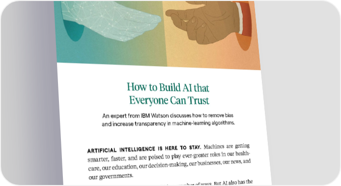 116 Kellogg Insight Based on insights from Florian Zettelmeyer and Inhi Cho Suh How to Build AI that Everyone Can Trust An expert from IBM Watson discusses how to remove bias and increase transparency in machine-learning algorithms. ARTIFICIAL INTELLIGENCE IS HERE TO STAY. Machines are getting smarter, faster, and are poised to play ever-greater roles in our health - care, our education, our decision-making, our businesses, our news, and our governments. Humans stand to gain from AI in a number of ways. But AI also has the potential to replicate or exacerbate long-standing biases. As machine learning has matured beyond simpler task-based algorithms, it has come to rely more heavily on deep-learning architectures that pick up on relationships that no human could see or predict. These algorithms
