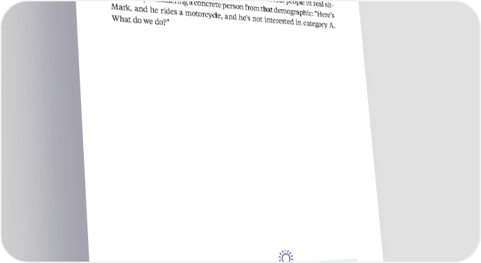 69 Kellogg Insight Based on insights from Steve Franconeri category A,” Franconeri explains, it is often far more effective to engage the parts of your audience’s brain that think about real people in real sit - uations by considering a concrete person from that demographic: “Here’s Mark, and he rides a motorcycle, and he’s not interested in category A. What do we do?” Featured Faculty Steve Franconeri , Professor of Psychology at Northwestern University and Professor of Management and Organizations at Kellogg (Courtesy) Learn more from Steve Franconeri in our Executive Education programs .